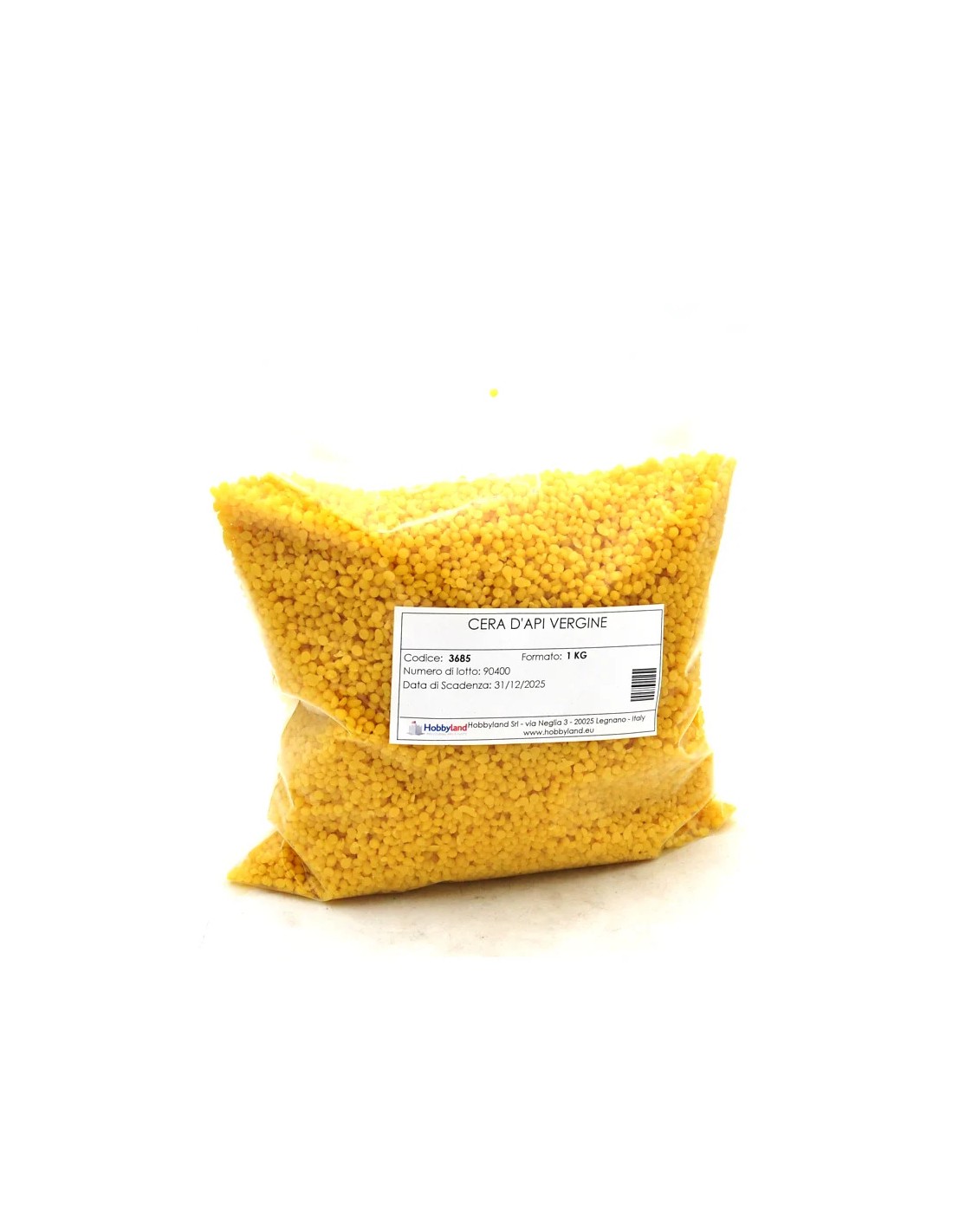 Cera vergine d'api al 100%, in perline morbide di colore giallo.